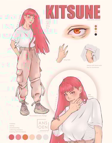 The examples shown here are original characters from a story I’ve been developing, each one designed to reflect their personality, background, and role within the narrative.